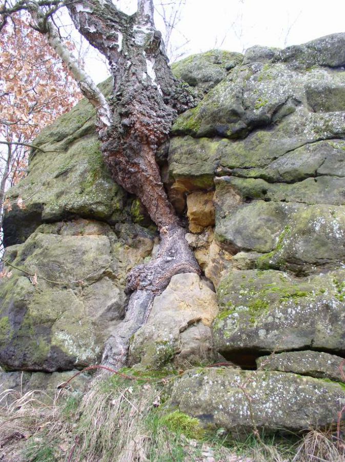 V reálu tohle spojení vypadá jako úzká skalnatá cesta, kterou dodnes hlídá dvojice přitesaných přírodních balvanů. Tyhle kameny slouží jako strážní brána a oddělují zadní akropoli od místa, kdysi určeného pro živé. Zadní Hrádek začíná uměle vyhlížející mohylou (ve které se ovšem může schovávat zbytek středověkého opevnění) a pokračuje přírodním skalnatým hřebenem. Tady už jsme uprostřed rozsáhlého žárového pole, které je archeologicky doložené na okolních stráních. I přímo na vrcholu pískovcového skaliska jsou vytesány komory sarkofágů, kde ležely rakve či urny zemřelých a byly zakryté kamennými deskami. Později ve středověku tu snad stával hrad, ale já osobně bych tu nebydlel. Tohle skalisko sloužilo už od pradávna jako obětiště, nicméně jeho dnešní působení je docela pozitivní. Tedy - pokud vám nevadí přítomnost mrtvých. Těch je tu stále habaděj a jsou tu spokojení a až překvapivě šťastní. Nešlapte jim do hrobů a oni vás na oplátku nebudou tahat za vlasy. Přívětivě si s vámi popovídají, vaše případné strachy a předsudky jim budou k smíchu a zdrojem k nevázanému žertování. A to je to jediné, na co je potřeba si dát pozor. Žerty mrtvých duší mohou být pro našince poněkud drsného ducha.