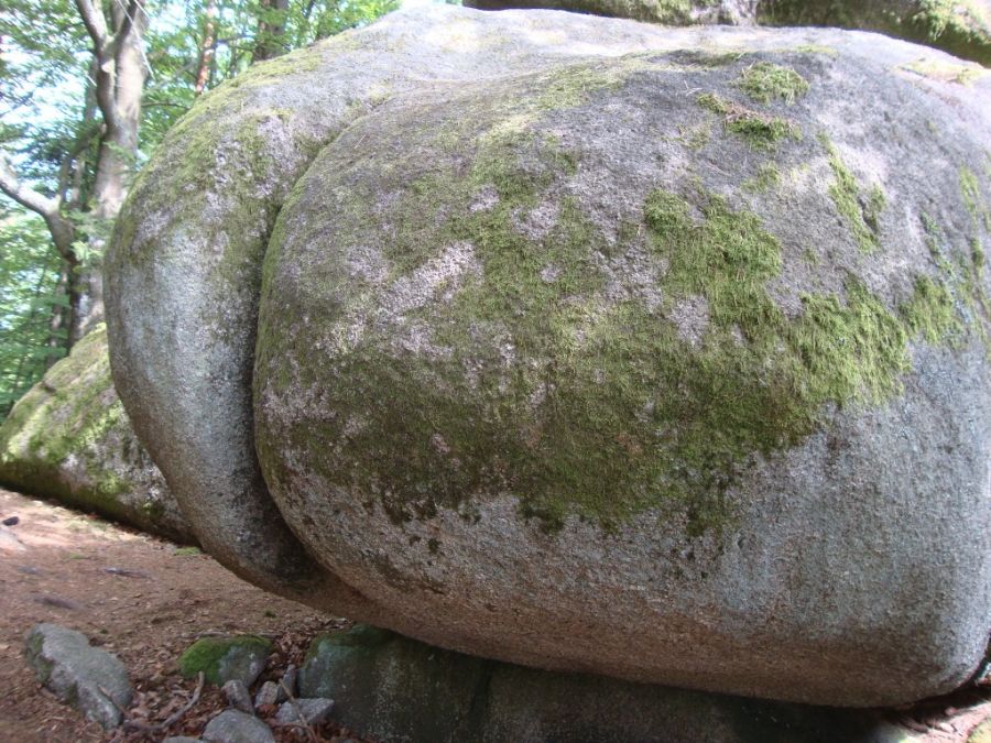 Kunžacká žula II • Od Terezína po Nový svět • Obec Terezín nalezneme cca 5 km jihovýchodně od Kunžaku. Podle legendy je jméno osady spojeno s císařovnou Mariií Terezií. Původně se ves jmenovala Petrov, což se místním obyvatelům moc nelíbilo. Panstvo v Jindřichově Hradci na jejich žádosti o změnu názvu nereagovalo. Údajně tedy využili chvíle, kdy panovnice přijela do Kunžaku a přednesli jí svoji prosbu o změnu jména. Císařovna uznala jejich důvody a vyhověla. Tak se z Petrova stal Terezín. Další zajímavostí je, že osadou prochází hlavní evropské rozvodí. Kuriozitou pak je, že tato hranice vede přesně po hřebenu střechy prvního domu směrem od Kunžaku. Déšť a sníh z pravé strany střechy odtéká potoky a říčkami směrem k Černému moři, z levé strany k Severnímu moři. Jako by se zde voda snad rozcházela na věky. Kolem Terezína i Nového světa vede několik turistických i cyklistických tras. V okolí obou vsí najdeme celou řadu zajímavých a velkých kamenů, jak jedinců, tak i různých kamenných sestav. Některé jsou ozdobeny vodními miskami, jiné nás ohromují svým tvarem či mohutností. Necelých 50 metrů za Terezínem u silnice na Nový svět (potkává se zde červená a zelená turistická značka) stojí nádherný aktilit. Jedná se o do kříže rozpuklý balvan, s jakousi jeskyňkou, něco jako vykotlaná zubní stolička. Přijdeme-li s pokorou a láskou, nabídne nám tato místní energetická zóna možnost velmi zajímavých prožitků. Bylo zvláštní pozorovat, jak si rozhádaný pár turistů místa ani nepovšiml. Kámen může z jistých úhlů pohledů připomínat i slona, či anděla, ale nejvíce nám sedl létající drak. V okolí jsou další tři dohlížecí místa, aby se tato létající hračka s možným účelem pro nácvik levitace nevymkla dětem z rukou. Jedno pro ukotvení a návrat, druhé pro správný pohyb a let, a na tom třetím seděl vrchní neutrální, nezaujatý pozorovatel. Buď to fakt fungovalo, nebo to byl ten rum v čaji, ale vyzkoušet si to sem můžete přijet i Vy, nebo jen vyčistit hlavu v tomto nádherném, stále ne úplně prozkoumaném kraji. Vydáme-li se ze silnice severním směrem po zelené turistické značce, asi tak v polovině cesty mezi oběma obcemi, dojdeme zhruba tak po kilometru, ke skalnímu útvaru zvaném Ďáblova prdel, nebo taky někdy Prdel světa. Odmyslíme-li si dnešní vulgární označení, které si žádný kámen nezaslouží, jedná se převážně o ženské místo, takzvaný porodní kámen. A věřím, že toto místo muselo tehdejší církvi ležet hodně v žaludku. Místo bylo asi určené nejen pro porod jakožto takový, ale i pro věštění z plodové vody a ostatní s tímto aktem spojené rituály. V horních partiích pak nalezneme podivné misky, připomínající zárodečné buňky a soustavu meridián. Jelikož byly rozvody a misky zanesené, vyčistili jsme je. Během okamžiku, kde se vzala, tu se vzala, přiběhla malá holčička, požádala tatínka, který po chvíli přišel, aby jí pomohl nahoru a dočistila ostatek a kochala se, jak je tam krásně. Bylo milé a poučné sledovat reakce této dívenky na tomto místě. Hned vedle mohutného aktilitu je ještě přípravné (hekací) místo pro rodičku a její pomocnice. I muži si zde ovšem můžou přijít na své. To místo je pod těmi správnými partiemi, připomínající ženskou nebo i zemskou vagínu. A tak si zde každý, bez rozdílu pohlaví může projít tím okamžikem, kdy přicházel na tento svět. Odtud pak i možná ten hanlivý název Prdel světa. Místo je to opravdu velmi silné a kámen je kuriózních tvarů, vedou odtud další energetické linie, ale i cestou sem, či zpět mějte stále oči otevřené a mysl přítomnou, překvapení můžou číhat za každým smrkem a mohou být jen Vaše ☺ Ať se daří. Klidné dny. Petr a Vlaďka