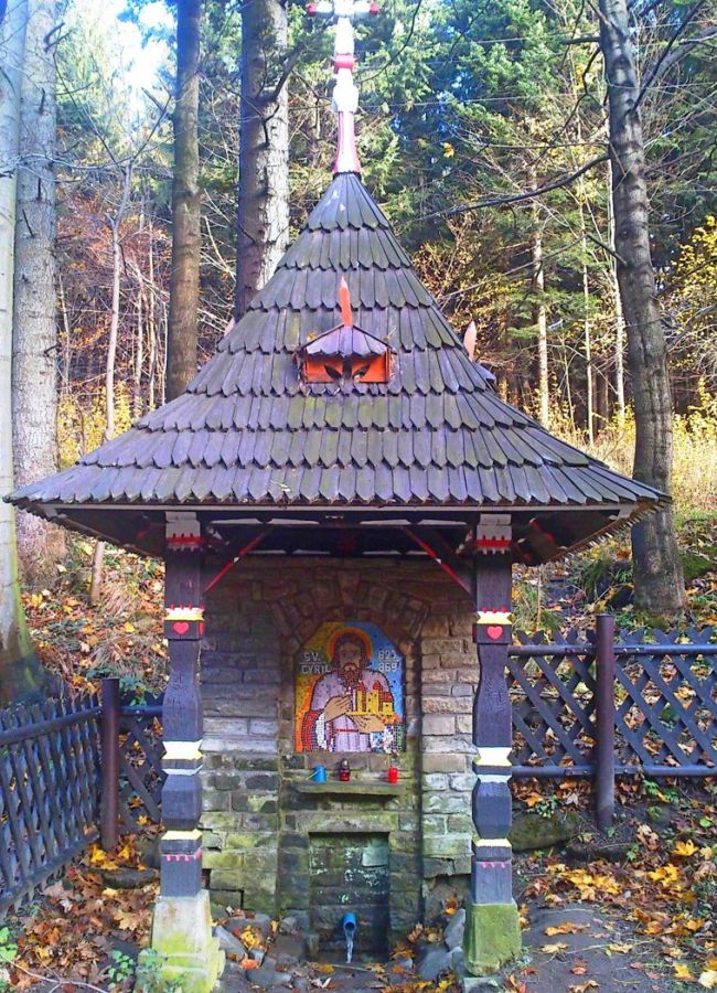 Nejkrásnější kout Valašska Cyrilka Zavítáte-li někdy do krajiny pod Beskydami kolem Čeladné či Frýdlantu nad Ostravicí, nenechte si ujít návštěvu známého pramene Cyrilka. Najdeme ho asi pět kilometrů na modré značce vedoucí od nádraží z Kunčic pod Ondřejníkem, případně od známých lázní Beskydského rehabilitačního centra. Tam se podíváme za chvíli. Cestou jako první mineme skvost dřevěné architektury - kostel sv. Prokopa a sv. Barbory. Jde o kostel - imigrant. Původně stával na Podkarpatské Rusi, k nám doputoval až v roce 1931. Zakoupil ho a nechal znovu postavit generální ředitel Vítkovické báňské a hutní společnosti ing. Šebela. O této stavbě platí přesně to, co jsem obšírně popisoval v textech o dřevěných kostelech: Jsou svědky zvláštního přístupu k duchovním stavbám. Ve většině případů bylo dřevo k jejich stavbě použito pouze coby nejdostupnější a nejlevnější materiál, ale tato praktická nutnost byla často doplněna i čímsi jiným. Pochopením, že dřevěná stavba má úplně jinou, teplejší a lidštější energii, než studený a přísný kámen... (Viz zde a zde) Ve svahu nad kostelem vidíme budovy Beskydského rehabilitačního centra. Původně to byly lázně, které založil v roce 1902 ostravský doktor MUDr. Jan May v zakoupeném hotelu Skalka. Šlo o bohulibý čin. Lázně byly přednostně určeny pro nemocné ostravské dělníky a děti, trpící plicními chorobami ze zakouřeného Ostravska, jak emotivně popisuje František Sokol Tůma: „Plíce mají plny písku, mouru, prachu, ostrých tělísek; rádi by se napili čerstvého vzduchu, rádi by plnými doušky hltali zdravý vzduch, prosycený po dešti a bouři svěžím ozonem... Tito zde, tito horníci, rádi by svá ústa naplno otevřeli, rádi by se opojili čerstvým vzduchem, propláchli, očistili, ozdravěli. - Ano, rádi! Než, zde nelze". A tak vznikly plicní lázně, a současně i zdejší okrašlovací a turistický spolek, který se významně zasloužil o propagaci i turistický ruch v oblasti. Patřil k němu, a dlouho ho vedl i výše zmíněný Eduard Šebela. Lázně po válkách nezanikly, naopak investovalo se do nových sanatorií i provozů. Vznikla tady nemocnice i s porodnicí... Dnes jsou lázně zpět rehabilitačním centrem pro pacienty s oběhovými, pohybovými a nervovými poruchami. Léčí se tady mimo jiné i zajímavými technikami jako je kryoterapie a léčba tmou. V areálu najdeme i vodní zdroj - Ferdinandovo zřídlo. Je umravněný kohoutkem, ale jeho pověst a nakonec i voda není špatná. Dle popisu: „V roce 1890 se u místního pramene, který později získal přívlastek Ferdinandův, podle legendy zjevila Panna Maria. Voda z pramene pak napomohla k mnoha uzdravením, což se rychle rozneslo po okolí a lidé začali k tomuto pramenu chodit pro vodu. Jako projev díků za mnohá uzdravení byla zde roku 1893 postavena vedle pramene dřevěná kaplička, která později dostala název kaple nejsvětější Panny Marie." Kaplička i Panna Marie je stále přítomna, ale pramen skomírá. Vinou malého průtoku a uzavření kohoutem trpí voda sezonně nadlimitním množstvím bakterií a tak jí pije kromě nás jen málokdo. To ovšem neplatí pro náš dnešní hlavní cíl - silný a čistý pramen Cyrilka. Jde pochopitelně i o jeden z hlavních cílů pro rehabilitující pacienty centra. Můžeme tedy pěšky spolu s pacienty, ale dá se k němu dojet i autem z Čeladné, což ocení ti, kteří si jeho skvělou vodu odváží domů v kanystrech. Mezi tisícovkami lesních pramenů v Beskydech si pramen Cyrilka u Čeladné vysloužil velkou lidskou pozornost. V roce 1936 tady Arcibiskupská správa lesů a statků nechala vybudovat zdobnou kapli a pramenník podle projektu ing. Rosky z Kroměříže. Nejedná se tedy o dílo Jurkovičovo, i když stavba i provedení kaple se jeho dřevěným stavbám hodně podobá. I tady můžeme pozorovat dokonalou práci se dřevem, dosvědčující profesionální znalost tesařských a truhlářských technik našich předků. Dokonalá funkčnost je doplněna velkým množstvím zdobných prvků, které dodávají stavbě šat z dřevěných krajek a ozdobných sloupků. Tvary doplňují až křiklavé světlé barvy, které tak kontrastují s černí starého dřeva. Jak jméno naznačuje, kaple je zřejmě od své stavby zasvěcena svatému Cyrilovi a Metodějovi. Mozaiku sv. Cyrila si můžeme prohlédnout přímo nad pramenem. Ale podle pamětníků zde kdysi stávala kaple sv. Anny. Snad i tady se nám ukazuje rozpor katolických a evangelických věr? V každém případě jde o malebné, až kýčovitě přezdobené a barevné dílko. Voda pochopitelně kýčovitá není ani kapku . Přikládají se jí zázračné a léčivé účinky a kvalita přítomných jemněhmotných energií tomu nasvědčuje. Dokonalá rovnováha přírodních zemských sil s vůlí a silou sil duchovních se nabízí každému otevřenému srdci. Nabídka je kompletní a obrovská. Stačí jen pokleknout a nabrat do dlaní i do srdce doplna a dosytnosti. Jak kdo může a unese. Tak vzhůru do „nejkrásnějšího koutu Valašska", jak ho pojmenoval zdejší bard, „valašský slavík", Josef Kalus, o kterém píše Petr Bezruč: Sedmdesát podzimků na skráň padne mladistvému staříku ve vsi ladné: Žij, valašský slavíku, na Čeladné. (Petr Bezruč) Jiří Škaloud