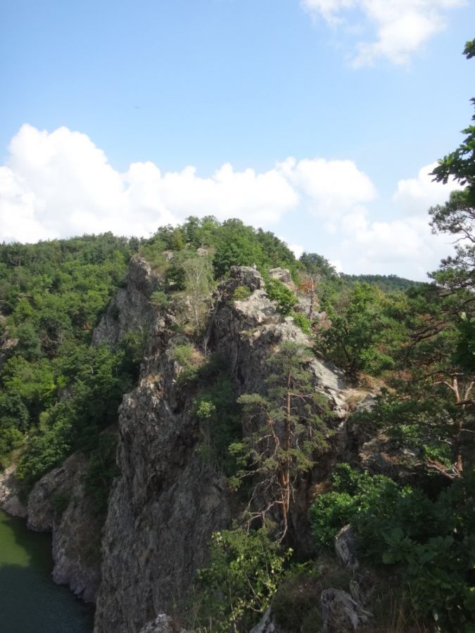 Chvalatice - pravěké hradiště ● Místo předků nad přehradou Vranov ● Eneolitem nazývají archeologové období na konci doby kamenné. Řidčeji se mu říká též „chalkolit" z řeckého spojení slov „měděný-kámen", česky tedy doba měděná. Na našem území připadá tento civilizační stupeň na období zhruba od 4300 do 2200 př. n. l. Dělí se na čtyři éry, časný, starší, střední a mladší eneolit. Typickým znakem, který dal období jméno, je znalost zpracování mědi. Tedy zatím ještě nikoliv bronzu, ale čisté mědi. Zdokladovaná je už i organizace a znalost hlubinné těžby hornin systémem štol a šachet. Dochází k převratnému vynálezu kola a s ním i vozu, užití tažných zvířat a oradla v zemědělství. Křížová orba v sobě nesla rituál spojení s Matkou Zemí a kultem Slunečního Býka. Pohřební okrsek, místo mrtvých, na rozdíl od neolitu se jasně v eneolitu odděluje od sídliště, místa živých. Díky hospodářským změnám, užívání oradla a dobytka se upevňuje společenské postavení muže a přechází na něj starost o pole. Postupně také ale dochází k sociální diferenci obyvatel. Budují se výšinná hrazená hradiště. Místo dlouhých společných domů z neolitu se objevují menší obytné stavby, chaty. Komunita rodu se mění na rodinu, osídlení jako celek jsou mnohem menší. Pokud neolit nazýváme „zemědělskou revolucí", pak eneolit směle můžeme spojit s „revolucí metalurgickou". Jedno malé pravěké výšinné hradiště s počátky až v eneolitu najdeme rozložené na skalnaté šíji nad vodní nádrží Vranov (viz. foto, mapa). Je ze tří stran přirozeně chráněno nepřístupnými a strmými skalami a vodou. Pouze na přístupové severní straně byl zbudován dodnes stále patrný příkop a pravděpodobně i valy. Místo nese název Růžový vrch a jedná se o přírodní rezervaci z r. 1996 patřící k lokalitě Údolí Dyje. Úžasné výhledy, úchvatné scenérie, povznesení i uzemnění, voda a kámen, kámen a voda. Nebude se vám odtud vůbec chtít. Archeologické nálezy pak potvrdily osídlení od dob eneolitu až po Slovany doby hradištní z 9. - 11. století. Chcete-li si popovídat s pravěkými předky, musíte po skalnatém hřbetu až na okraj ostrožny. Cesta ale není snadná, zvažte své možnosti. Jako by tu stál obrovský menhir, tyčí se zde výrazný skalní jehlovitý útvar, kterému se říkalo dříve Babka, a podle kterého nese název i celá ostrožna. Je to krasavec/krasavice, nemluvě o tom, že všechny zde přebývající obyvatele znal a paměť má jak slon. Ať si vzpomene i na vás! Zná i vodního draka z nádrže, ale s tím radši opatrně. Energie hradiště hovoří o kráse, síle i místě vytvořeném znalou lidskou bytostí, člověkem. Tak až budete mít cestu do těchto míst, stavte se. S ohledem na své fyzické schopnosti i vědomou úctou k takovým místům, předkům i přírodě. Klidné bytí. Petr a Vlaďka