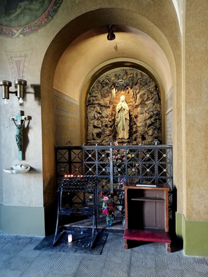 Kostel svatého Václava na Smíchově Kostel sv. Václava vznikl později, než většina pražských kostelů. Kvůli rychlému rozvoji Smíchova v době průmyslové revoluce přestala stačit kapacita původního menšího kostelíka sv. Filipa a Jakuba na Arbesově náměstí. Proto byl v letech 1881-1885 postaven větší kostel v novorenesančním slohu. Kostel sv. Václava patří k největším pražským chrámovým stavbám 19. století, a na jeho výzdobě se podíleli významní umělci tehdejší doby. Hlavním architektem byl Antonín Barvitius. Nad vchodem do kostela nás vítá barevná majolika znázorňující sv. Václava mezi anděly. Nad ním je kruhová vitráž Panny Marie s Ježíškem. Hlavní oltář s baldachýnem a stojící sochou svatého Václava navrhl A. Barvitius. Nad oltářem je mozaika znázorňující Krista obklopeného světci od Josefa Trenkwalda. Obrazy v kostelní lodi a malby proroků mezi sloupy zhotovil malíř František Sequens. Podílel se též na vitrážích v oknech, kde najdeme všech dvanáct apoštolů. Novorenesanční styl doplňuje kazetový strop. Za zmínku stojí také dva boční oltáře. Vlevo je oltář s obrazem od Maxmiliána Pirnera, zasvěcený Panně Marii. Autorem druhého oltáře sv. Kříže je malíř Zikmund Rudl. Sochy sv. Ludmily a sv. Václava stojící vedle oltáře nám připomínají legendy o svatém Václavu a jeho babičce, svaté Ludmile. Svatý Václav (907-935) je český kníže, patron a ochránce České země a symbol naší státnosti. Při vládnutí nespoléhal tolik na sílu, jako na křesťanské duchovní hodnoty. Snažil se o mírovou politiku, blaho a rozkvět země, a proto se také stal jejím patronem. Je s ním spojována také legenda o Blanických rytířích, kteří vyjedou na pomoc českému národu, až mu bude nejhůř. A v jejich čele stane právě svatý Václav. Při návštěvě kostela si můžeme vybavit také tradiční Svatováclavský chorál. Jedná se o modlitbu ke sv. Václavu. Později byla využívána také jako sjednocující bojová píseň, ať již za dob husitů, křižáckých výprav, či během třicetileté války. Sám císař Karel IV. zavedl zpěv Svatováclavského chorálu při korunovaci českých králů. Až do 19. století chorál sloužil jako náš národní hymnus, než byl v roce 1834 nahrazen hymnou „Kde domov můj". Text sice během staletí prošel změnami, základní prosba o ochranu a jednotu českého národa však zůstává stejná napříč dějinami, časem a prostorem: „Svatý Václave, vévodo České země, nedej zahynouti nám ni budoucím." Pokud si ji zkusíte zanotovat v kostele, můžete mít pocit, že uklidňující ozvěna v kostele odpovídá: „Nedám. Není se čeho bát." Většinou bývá otevřené pouze atrium u vchodu do kostela. Zde ve výklencích, umístěných přímo pod věžemi kostela, najdeme sochy Panny Marie a Krista. Jejich umístění není náhodné - návštěvník doslova vstupuje do chrámu Božího skrze Spasitele a jeho Matku. A právě sem do atria po celý den přicházejí návštěvníci poprosit o pomoc či uzdravení. Také my jsme zváni k zastavení. Panna Maria i Kristus působí uklidňujícím dojmem. Kristus s rozepjatými pažemi žehná všem příchozím, a jeho náruč se zdá být otevřena všem potřebným bez rozdílu. Jako kdyby nám mlčky sděloval: „Nemusíte na to být sami. Jsem tu pro vás. A zejména pro ty, kteří si myslí, že sem nemohou přijít, protože by nebyli vítáni." Můžeme spočinout ve svém vnitřním tichu také u Panny Marie, která jako milující Matka objímá každého, kdo se zde zastaví. Její tichá přítomnost nám dodává pocit, že jsme v pořádku a milováni, právě takoví, jací jsme. A také dává naději, že je možné nalézt úlevu od našich starostí a trápení. Ať se vám daří, Tereza